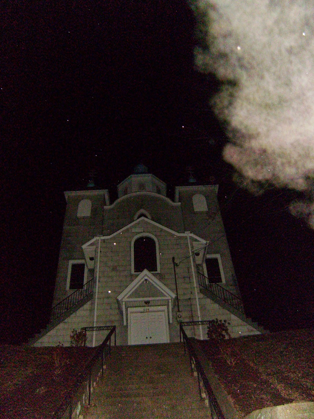 An interesting thing occurred while we were documenting the location, there is a church (See photo below) in the next town over. Now Centralia is known for the smoke escaping from the ground but over near the church this was not the case. There was no smoke visible, no one was smoking a cigarette and there were no vehicles spewing exhaust. in some of the photos there were massive amounts of smoke and in others there were none. We did not see any smoke/mist with our naked eyes, it was only when we reviewed the photographs. But there is something physically there based on the way the flash of the camera interacted with the smoke. (More pics of this are available, just ask) **Note: It was snowing/sleeting during the night time.